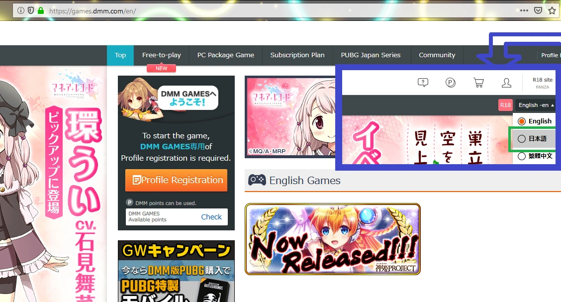 To play the game, you must first have a DMM account. An English DMM account is fine. Once you have made an account, you need to make a game profile before you are allowed to play any games.