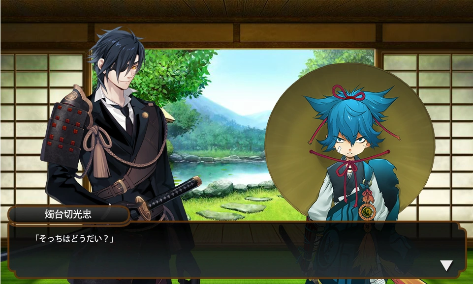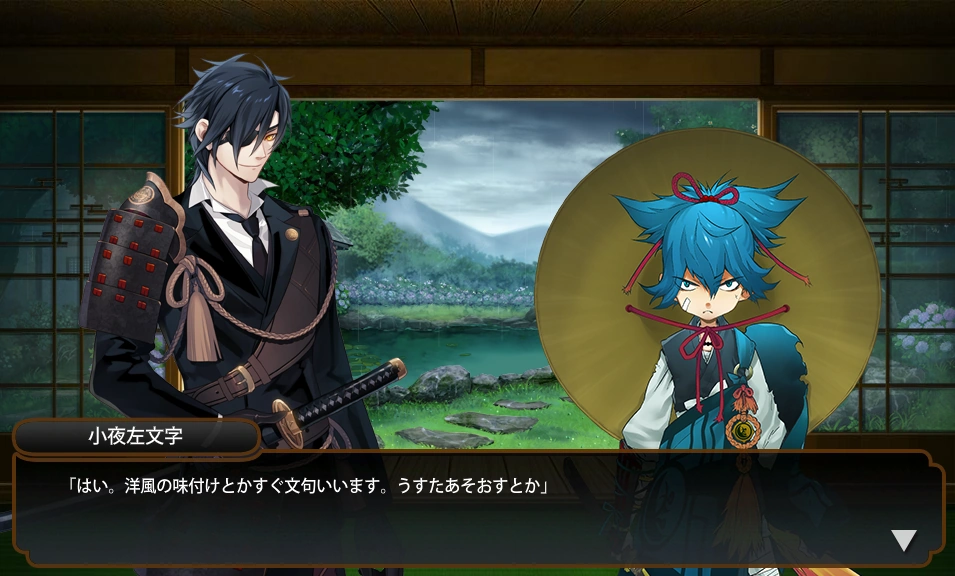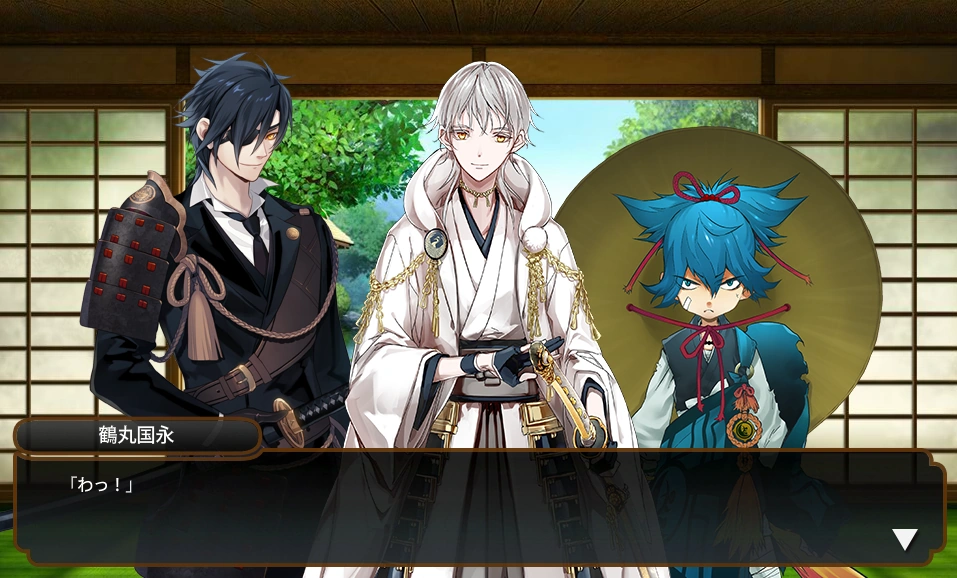 ↑ 2: Not reflected in the translation, but Sayo refers to Kasen as "うちの歌仙兼定", lit. "the Kasen Kanesada of my household." It implies that they share a very close relationship, but there is no adequate way to translate this connotation in English.