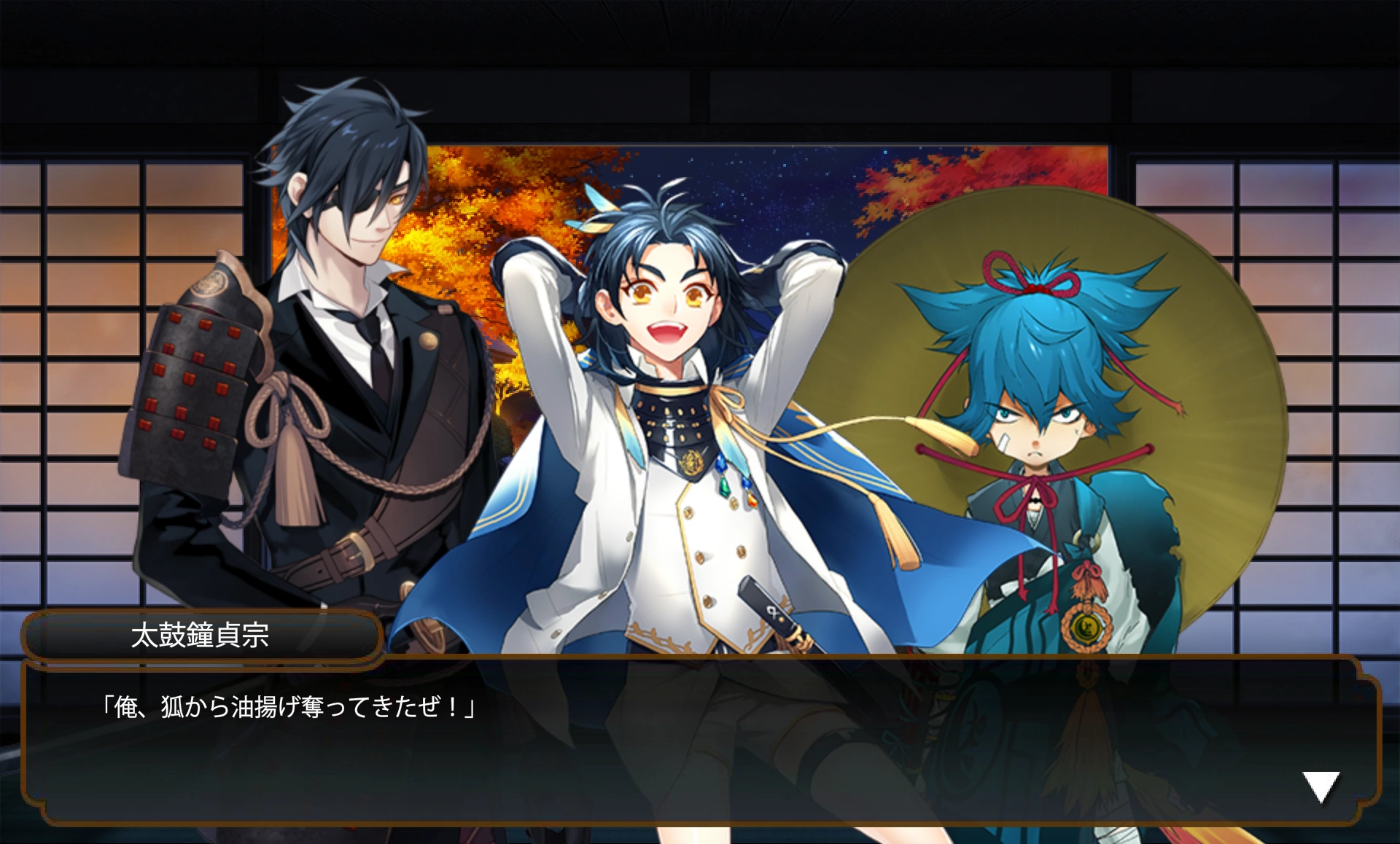 - Shokudaikiri Mitsutada, Sayo Samonji & Ookurikara must be in the party and defeat the boss at 7-2 to trigger this recollection.